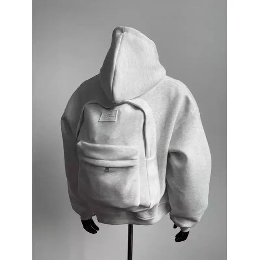 White Grey 3D Sweater Bag Hoodie Men'S Sporty Boxy Short Wide American Style Design Sense Men'S Hooded Jacket